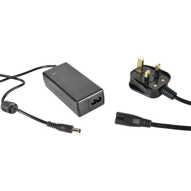 Mains power input is via a 2-pin fig.8 socket (UK mains lead supplied) and output is on a hard-wired lead terminated with a 5.5 x 2.1mm DC plug.
