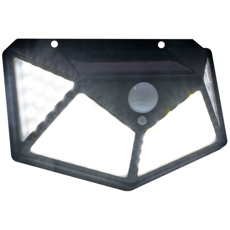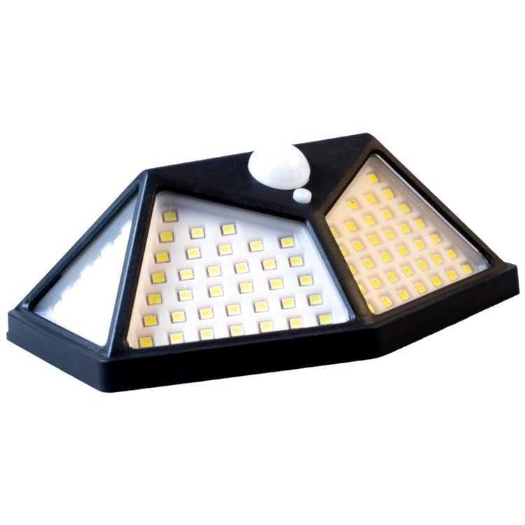 The St Helens Home and Garden solar powered motion sensor security light has 4 panels and gives a 600 lumen illumination. The light has 100 super bright LEDs. The light detects motion up to 3m away at a 120 degree angle and will illuminate for 20 seconds.