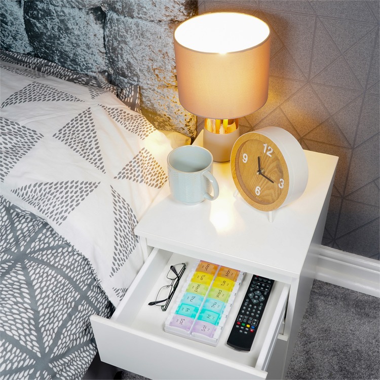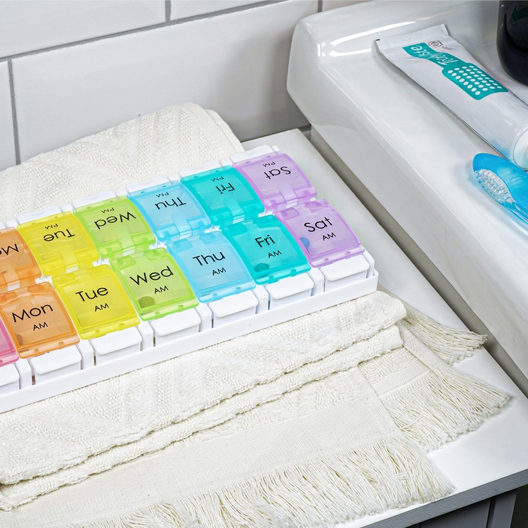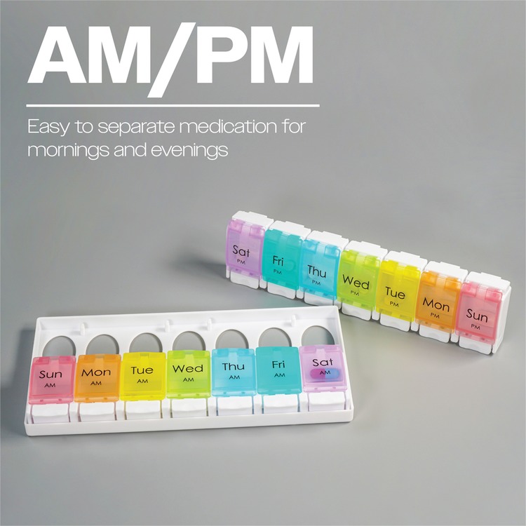 This easy to open 7-day pill box with 2 compartments per day will help you keep track of your daily medication schedule.