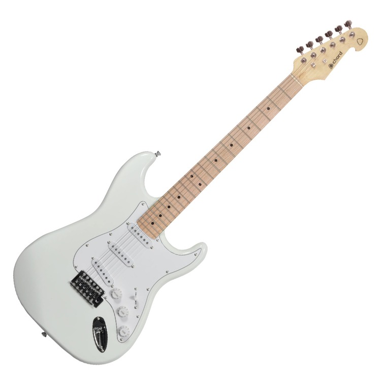 The CAL63M Arctic White Electric Guitar is a traditionally styled standard electric guitar with 3 single coil pickups. The 22 fret maple neck with maple fingerboard is bolted to the contoured basswood body.