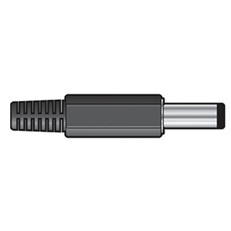 DC power plug with soft plastic cover and strain relief. Low voltage. Solder connections.
