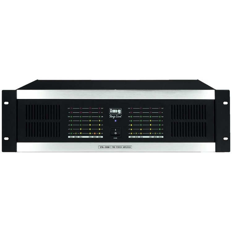 Multi-channel PA amplifier with 8 input channels and integrated limiter.