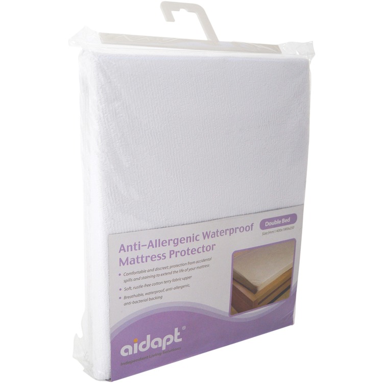 Enjoy a comfortable, worry-free night's sleep with our great value double mattress protectors, available for mattresses up to 254 mm/10"" deep. The Anti-Allergenic Waterproof Mattress Protectors are made with a soft, rustle-free terry cotton fabric for superior comfort and a generously-sized stretch skirt for a secure fit. The backing features a breathable membrane which is anti-allergenic, anti-bacterial and waterproof for extra reassurance. For convenience, the Mattress Protectors are machine washable at 40 degrees.